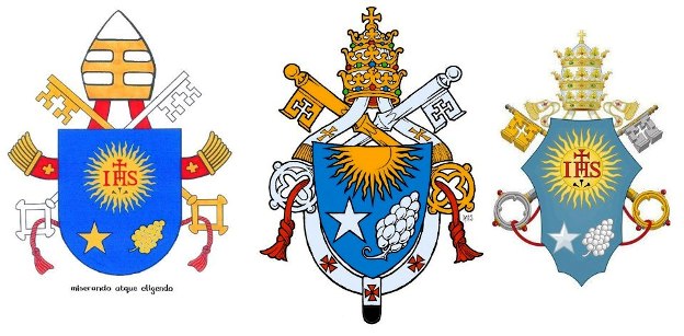 Oficjalnie zaprezentowano herb nowego papieża, Franciszka. Heraldyka kościelna jest jedną z najstarszych gałęzi heraldyki. Niestety, podobnie jak na przełomie XVIII i XIX w. przechodzi ona wyraźny kryzys. Dowodzi tego bardzo skromny i krytykowany przez heraldyków wizerunek herbu papieża Franciszka. Poniżej przedstawiam trzy wizerunki herbu papieskiego. Po lewej – wersja oficjalna, w środku – wyobrażenie autorstwa rosyjskiego artysty heraldyka Michaela Y. Medvedeva (projekt jeszcze sprzed ogłoszenia wersji oficjalnej), po prawej – wersja bliższa heraldyce włoskiej (charakterystyczna tarcza w kształcie elementu końskiej zbroi – testa di cavallo).