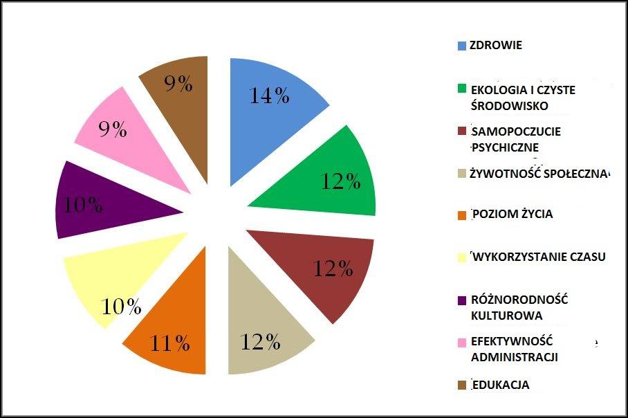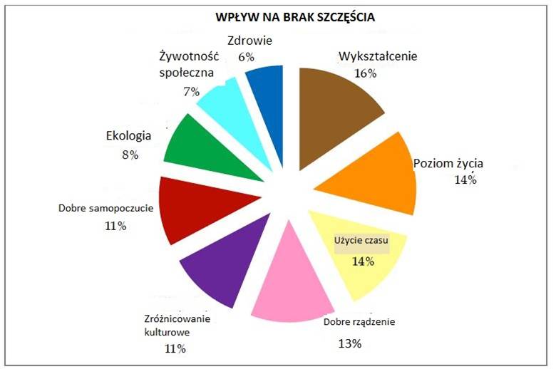 9 głównych czynników szczęścia podzielonych na 33 części składowe