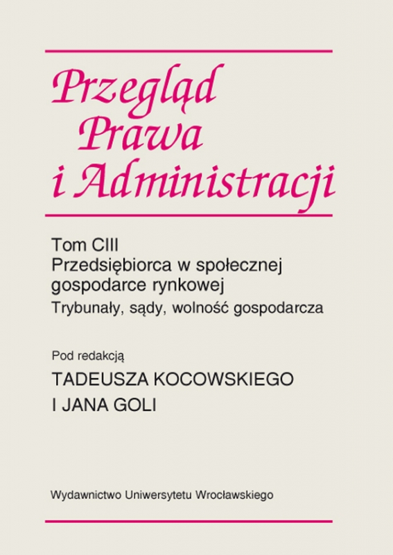 d53e3a72ckategorie486Wrocławski „PRZEGLĄD PRAWA I ADMINISTRACJI” (nr 103) zamknął poprzedni rok publikacyjny edycją czwartego numeru z roku 2015. Chociaż nie jest to wydanie ani z tego roku, a więc także nie numer z czerwca, to sam fakt odnotowuję jako czerwcowe wydarzenie. Numer w przeważającej większości poświęcono społecznej gospodarce rynkowej — instytucji konstytucyjnej, która nadal wzbudza duże trudności definicyjne i interpretacyjne. Wśród 28 artykułów numeru znalazły się omówienia najróżniejszych aspektów wspomnianego pojęcia, w tym również analizy porównawcze. Tom jest pokłosiem konferencji naukowej, która miała miejsce 20 marca 2015 r. na Wydziale Prawa, Administracji i Ekonomii Uniwersytetu Wrocławskiego i zawiera teksty wygłoszonych wówczas referatów. A ramach reklamy – czytelnikom zainteresowanym rzadko poruszanemu tematowi społecznej gospodarki rynkowej chciałbym zareklamować kolejny tom „Gdańskich Studiów Prawniczych„, który ukaże się w pierwszej połowie 2017 r. i będzie w całości poświęcony właśnie temu zagadnieniu.
