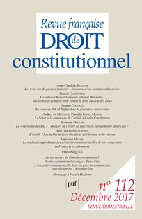 W grudniowym wydaniu francuskiego periodyku „REVUE FRANÇAISE DE DROIT CONSTITUTIONNEL” (No. 112) również omówienie ciekawej instytucji amerykańskiego prawa konstytucyjnego, tzw. „designated survivor„. Jest to osoba wyznaczana w sposób utajniony do roli „tego, który ma przeżyć” i zapewnić ciągłość władzy, jeżeli w przypadku ataku lub katastrofy zginą wszyscy najwyżsi urzędnicy państwowi na czele z Prezydentem. Pomysł na wyznaczanie „designated survivor” powstał po II wojnie światowej z obawy przed atakiem nuklearnym ze strony Związku Radzieckiego. Wśród licznych zalet przyjętego rozwiązania pojawiły się także wątpliwości natury konstytucyjnej — czy ta instytucja jest zgodna z konstytucyjną, a także ustawową regulacją dotyczą