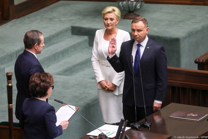 Obejmując z woli Narodu urząd Prezydenta Rzeczypospolitej Polskiej, uroczyście przysięgam, że dochowam wierności postanowieniom Konstytucji, będę strzegł niezłomnie godności Narodu, niepodległości i bezpieczeństwa Państwa, a dobro Ojczyzny oraz pomyślność obywateli będą dla mnie zawsze najwyższym nakazem.[Tak mi dopomóż Bóg].