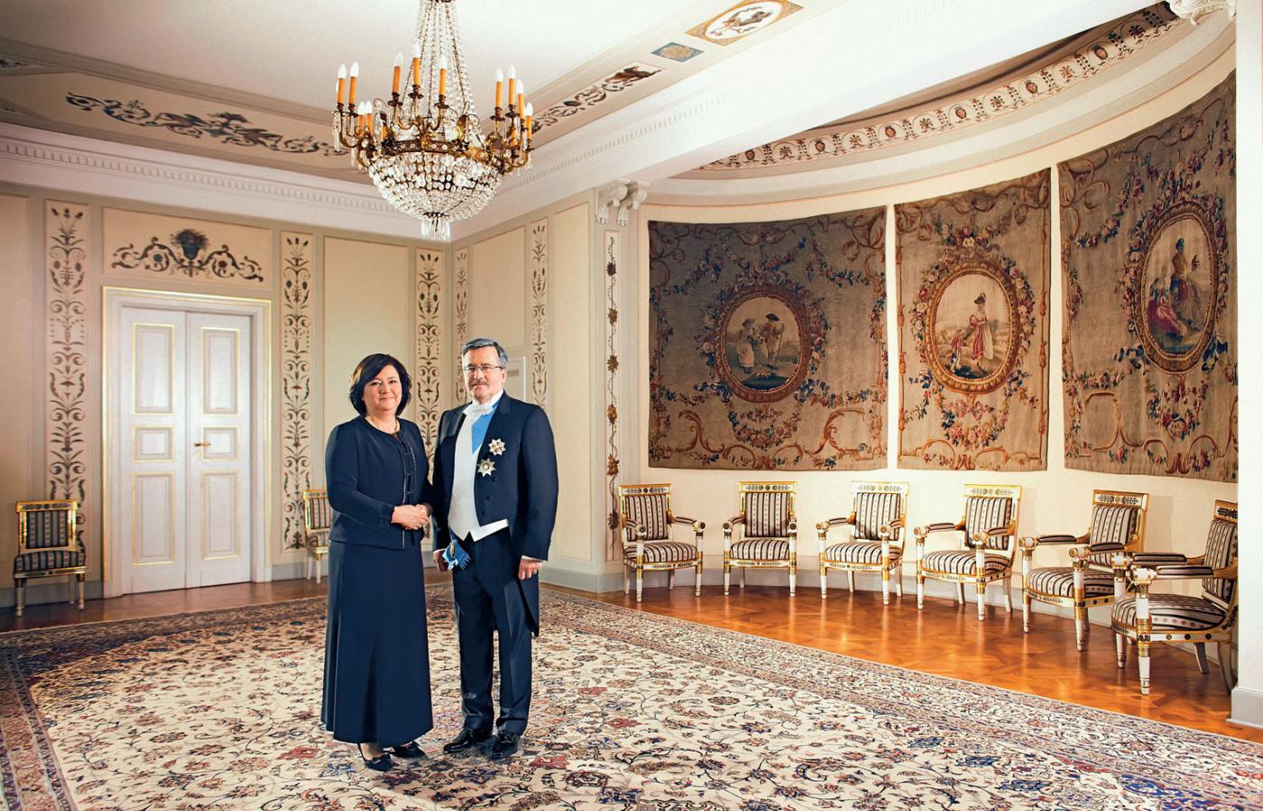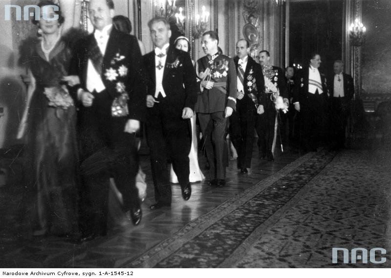 Poniżej dla porównania – zdjęcia z przyjęcia dyplomatycznego na Zamku w Warszawie w styczniu 1939 r. – Prezydent w pełnej gali orderowej z (nieprzywróconą po 1945 r.) kollaną (łańcuchem) Orderu Orła Białego. Mężczyźni – kawalerowi orderów najwyższych klas w przepisowych frakach. Poniżej – współcześni prezydenci i kawalerowi Orderu.