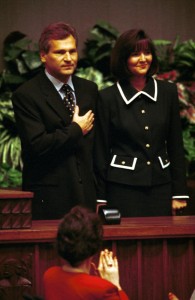 Inauguracja II kadencji Prezydenta Ronalda Reagana, 1985 r. Przysięga składana na Biblię trzymaną przez Pierwszą Damę.